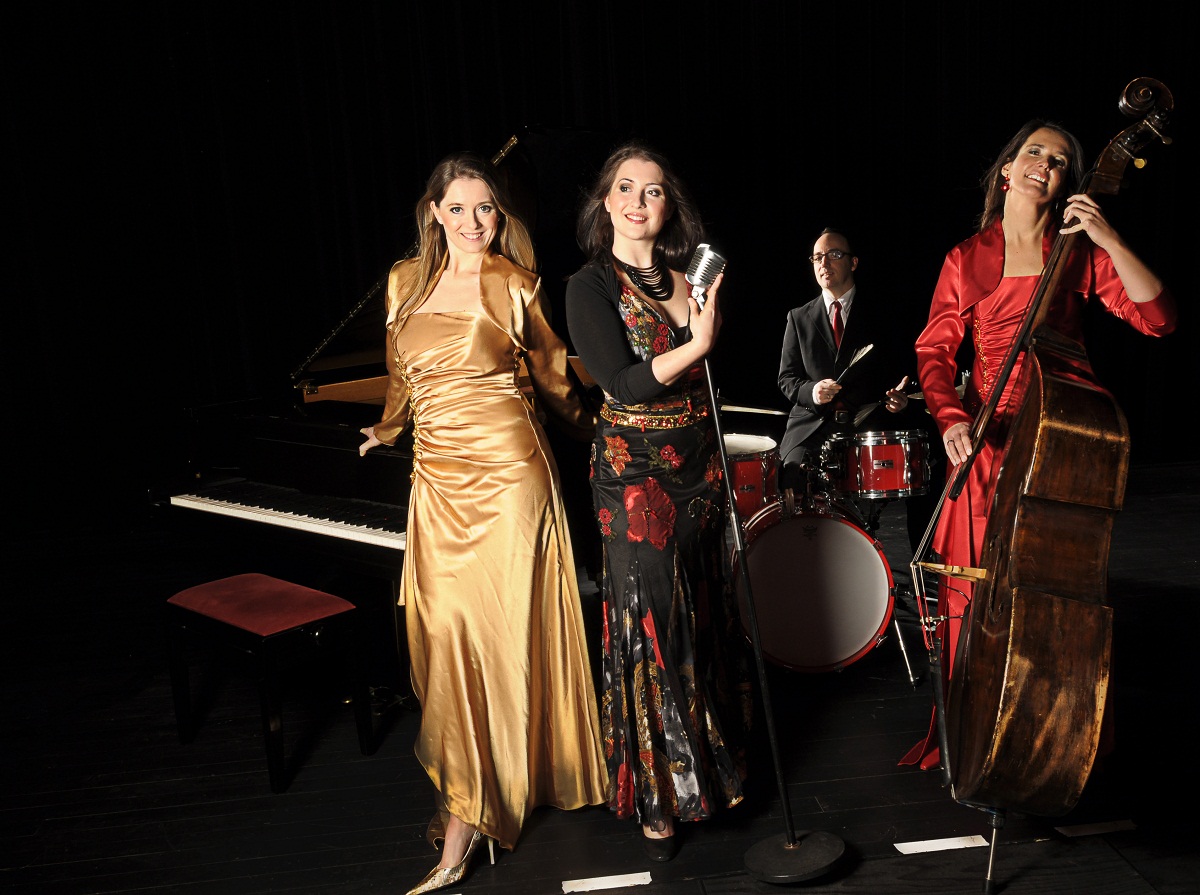 The Cover Girls, mit ihrem neuen Programm „Sisters“. Von Kopf bis Fuß auf „Swing“ eingestellt. Ulrike Tropper-Hernach (vocal) - Isabel Tropper-Hölzl (piano, vocal) - Eva Bacher (bass, vocal) - Aaron Ofner (drums, percussion). Petticoats, Pailletten und Benny Goodman - es lebe der Charme der legendären 1930er und -40er Jahre. Die Goldene Ära des Swinging Jazz. Wer einmal von diesem goldenen Lebensgefühl infiziert ist, kommt nie mehr los. Und der kann sich auch dem eleganten Swing von „The Cover Girls“ nicht entziehen. Sie heißen nicht nur so, sie sehen auch verdammt gut aus - Isabel, Ulrike und Eva.